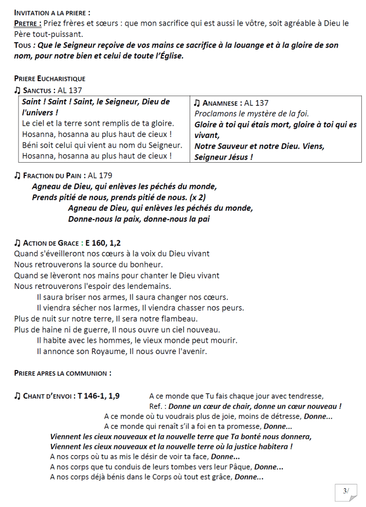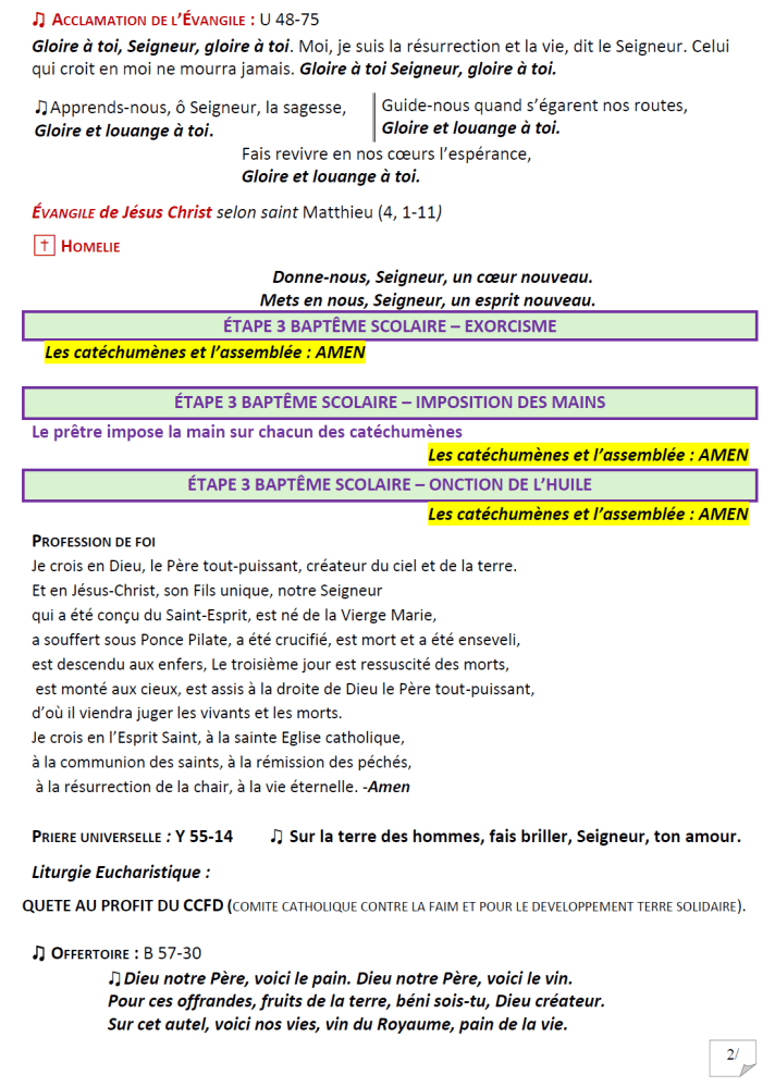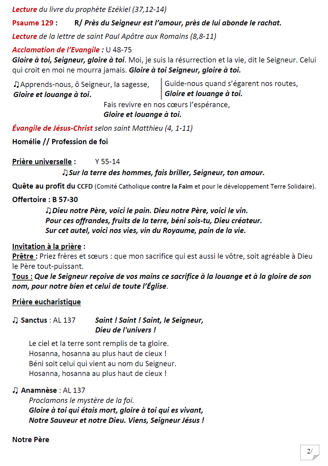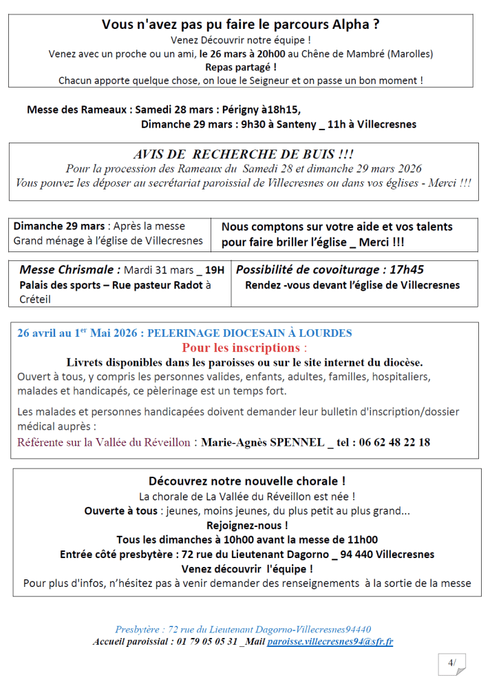 - Pour la célébration du dimanche 22 mars, à Villecresnes: voir juste après